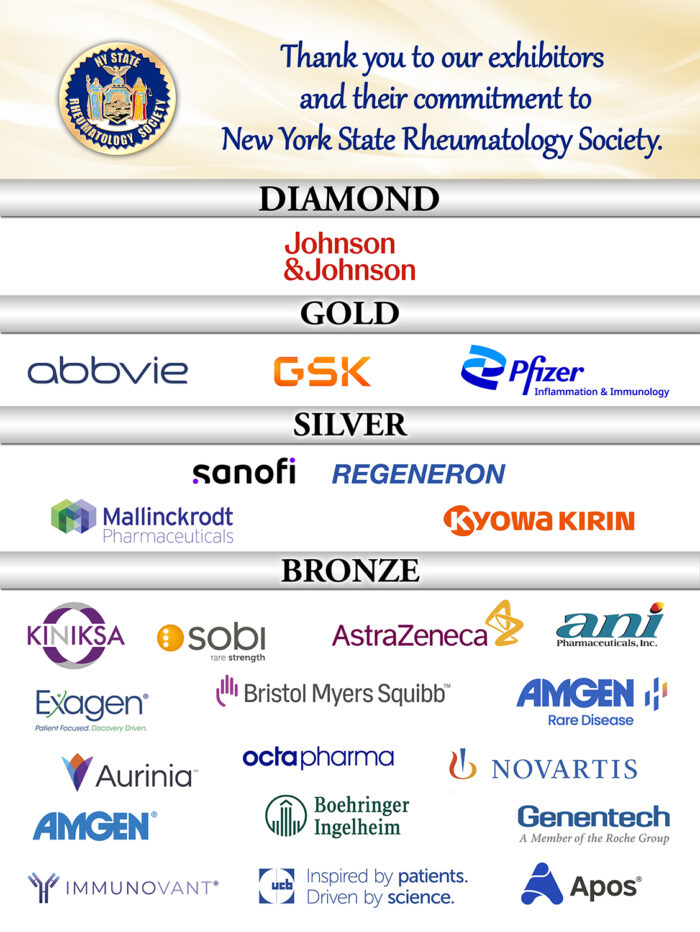 Thank you to our 2025 Meeting sponsors and their commitment to the New York State Rheumatology Society. 2025 NYSRS Spring Meeting: 2025 NYSRS Fall Meeting: